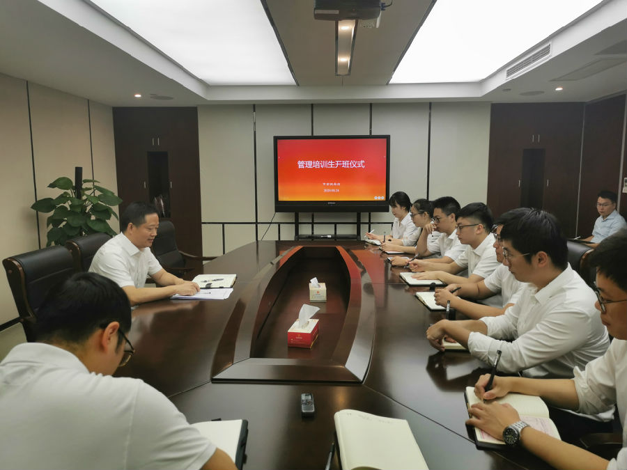 2020年8月25日,市金投集團(tuán)舉行了管理培訓(xùn)生開班儀式。集團(tuán)黨委書記、董事長兼總經(jīng)理管順正作開班致辭,7名管理培訓(xùn)生和指導(dǎo)老師參加了此次開班儀式。