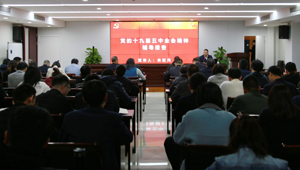 12月7日晚,市金投集團(tuán)邀請黨的十九屆全會精神市級專家宣講團(tuán)成員市政協(xié)常委、港澳臺僑委主任朱紀(jì)元為集團(tuán)和子公司全體職工作《黨的十九屆五中全會精神輔導(dǎo)報(bào)告》宣講。