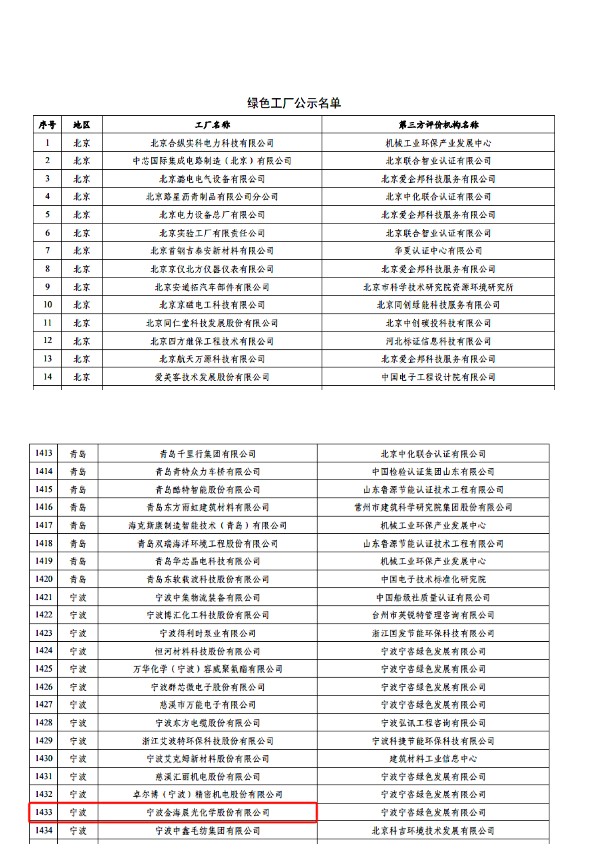 工信部日前公示2023年度國家綠色制造名單,寧波金海晨光化學股份有限公司(以下簡稱:金海晨光)入選國家級“綠色工廠”公示名單。綠色制造體系是針對符合科學“綠色發(fā)展”倡導的企業(yè)給出的一種認定,目的是深入實施綠色制造工程,加快構(gòu)建綠色制造體系,發(fā)揮綠色制造先進典型的示范帶動作用,從而實現(xiàn)產(chǎn)業(yè)全面升級和優(yōu)化。而國家級“綠色工廠”則是綠色發(fā)展榮譽的“天花板”,由縣、市、省各級工信部門按照“優(yōu)中選優(yōu)、寧缺毋濫”的原則層層選拔推薦。