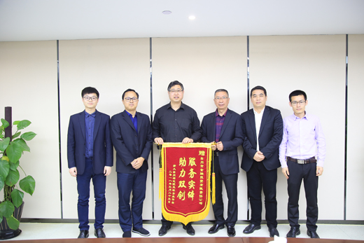 4月17日上午,浙大臺州研究院玉環(huán)中小企業(yè)平臺負責人董黎光一行到訪金投公司,并贈予錦旗。