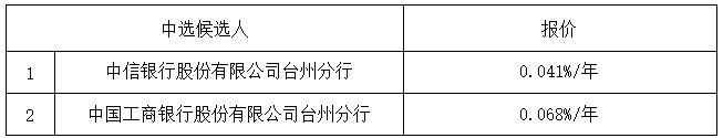 臺州市金融投資集團(tuán)有限公司中期票據(jù)和定向債務(wù)融資工具發(fā)行承銷商招標(biāo)(非政府采購)(重新招標(biāo))項目,經(jīng)評標(biāo)委員會評審,結(jié)果公示如下:
