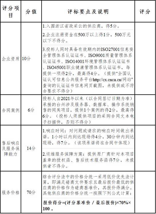綜合比選。評(píng)分標(biāo)準(zhǔn)見(jiàn)下表: