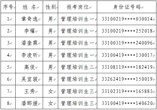 經(jīng)公開報名、筆試、面試、體檢和考察等程序,確定以下人員為擬錄用人員,現(xiàn)公示如下: