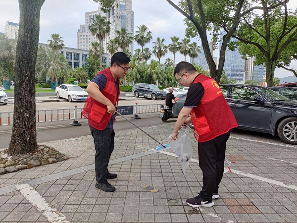 集團青年統(tǒng)一著志愿者服裝在結對的塔苑社區(qū)所轄范圍內拾撿垃圾,包括路面、街巷、房前屋后等地方的煙頭、垃圾、小廣告,主動引導他人不亂扔垃圾、不亂停亂放車輛、不隨地吐痰,號召培養(yǎng)文明、健康、有序的出行習慣,爭做文明守德公民。